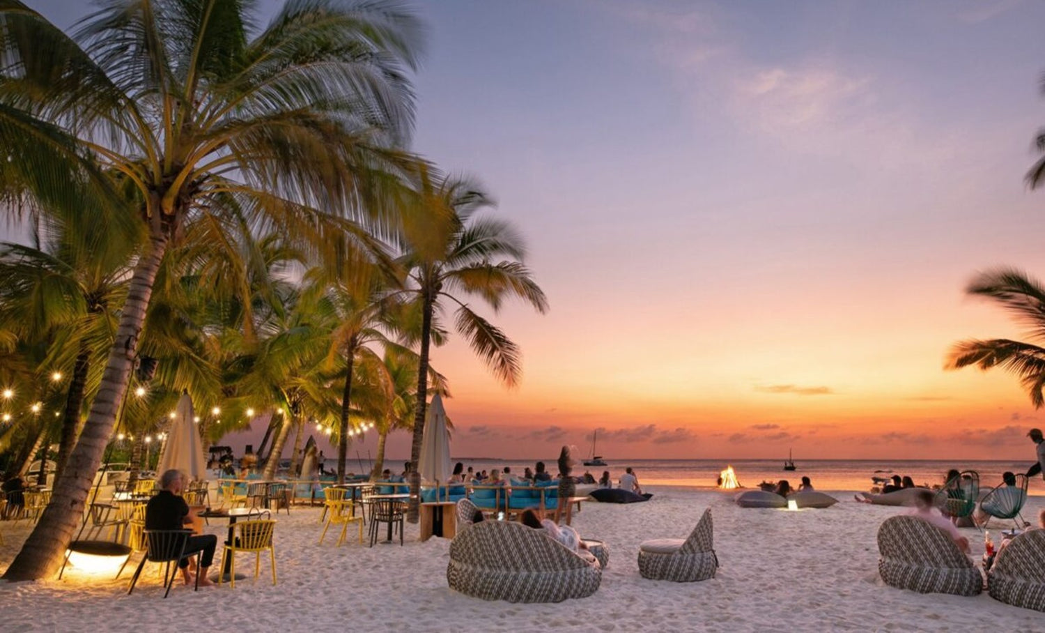 In the evening, sip cocktails at the beach bar while watching the sunset,